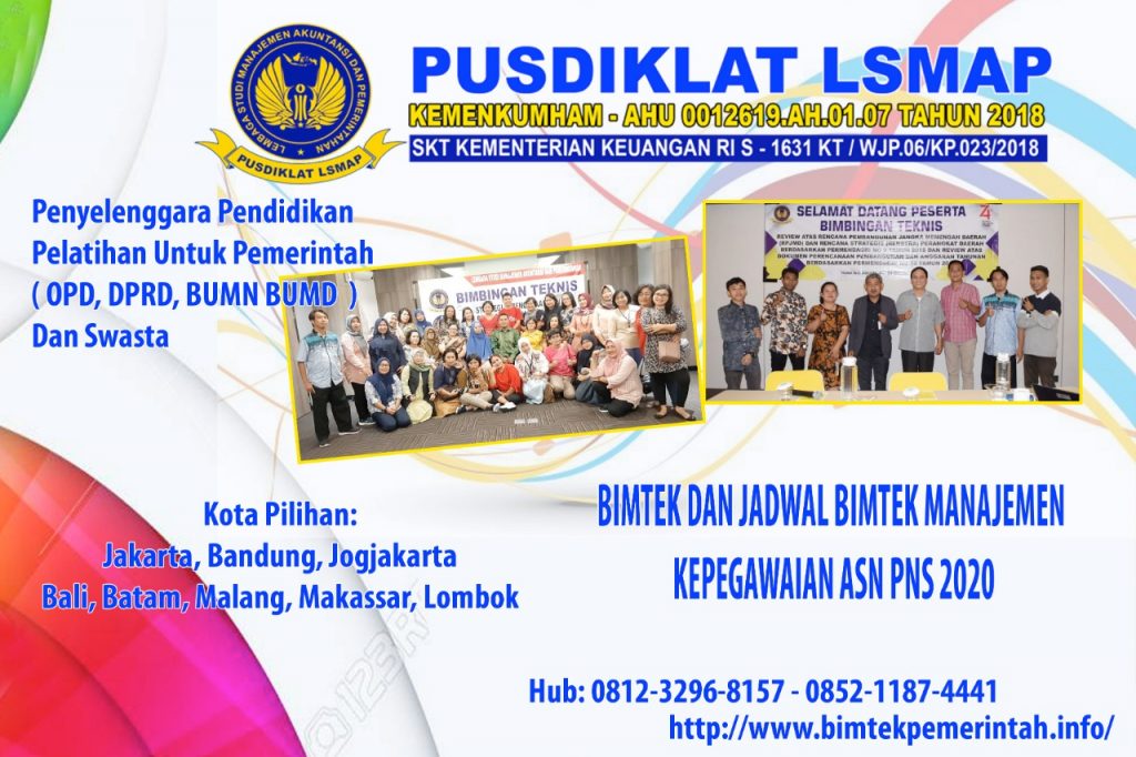 Bimtek Dan Jadwal Bimtek Pengembangan kompetensi Bidang Kepegawaian ASN / PNS Dan PPPK TA 2020 Kepada Yth, Gubernur, Bupati, Walikota Se-Indonesia Kepala Dinas, Badan, Kantor Dan Lembaga Teknis (Prov/Kab/Kota) Sekretariat DPRD Prov/Kab/Kota Se- Indonesia (Dimohon Hadir Bersama/Menugaskan & Mengizinkan : Cq. Kabag-Kasubbag, Kabid-Kasubbid Keuangan &...